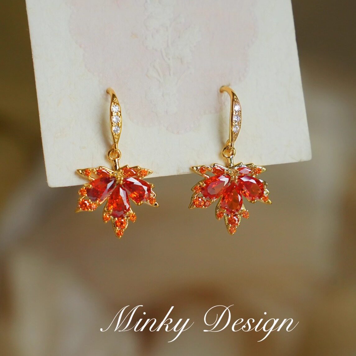「枫叶红」秋冬新款红色枫叶耳饰耳钉女蚊香盘耳夹无耳洞时尚耳环