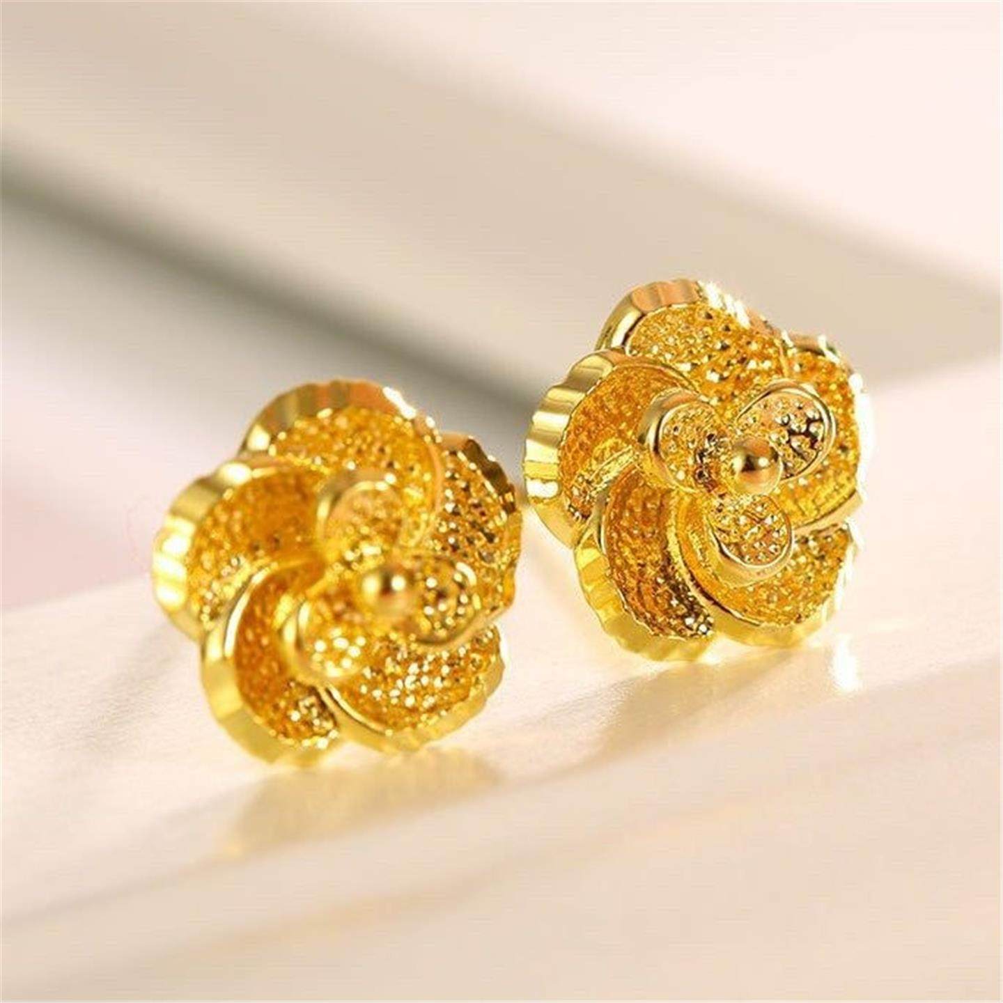 香港免税沙金气质耳钉女时尚耳环婚庆真金色耳饰520礼物不掉色