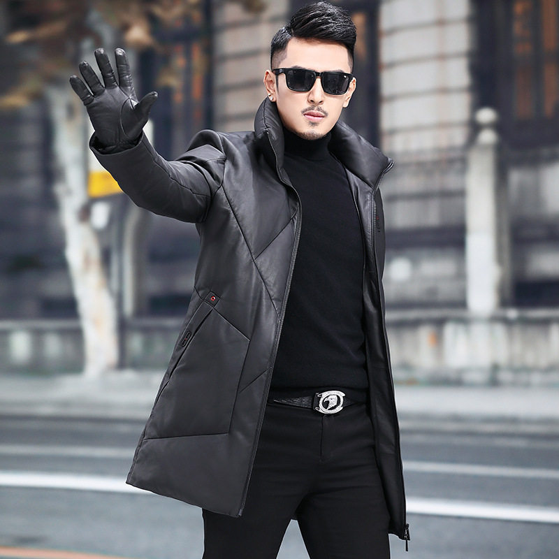 2026海宁真皮皮衣男士绵羊皮羽绒服立领潮流中长款修身加绒皮外套