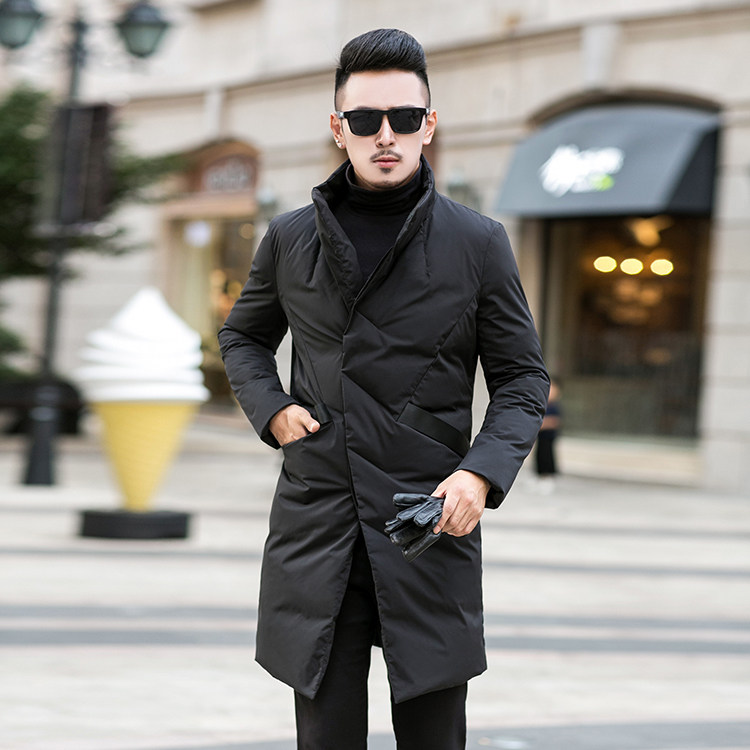 男士秋冬款时尚潮流中长帅气修身黑色商务欧货翻领羽绒服极简百搭