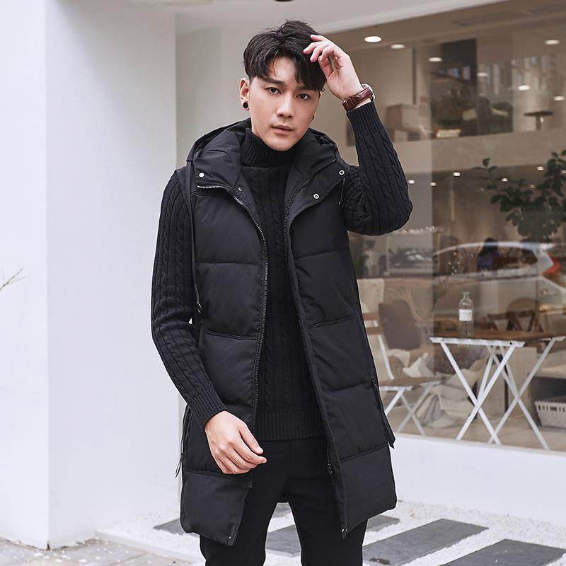 潮流男士洋气连帽羽绒棉马甲保暖坎肩加厚拉链韩版修身中长款马夹