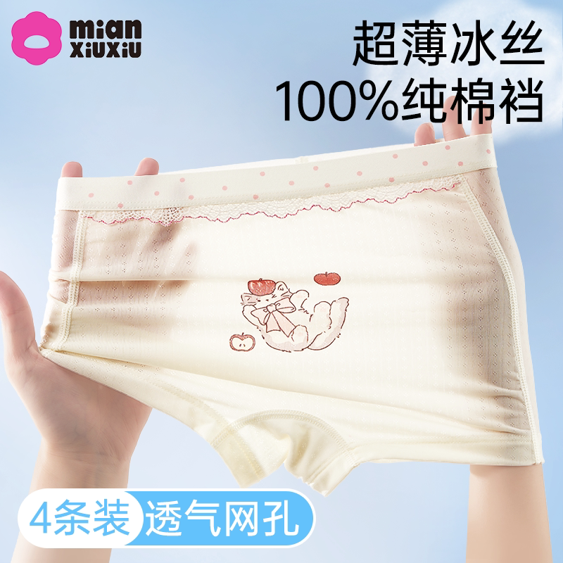 女童冰丝内裤儿童夏季薄款平角裤透气女孩100%全棉抗菌裆卡通短裤