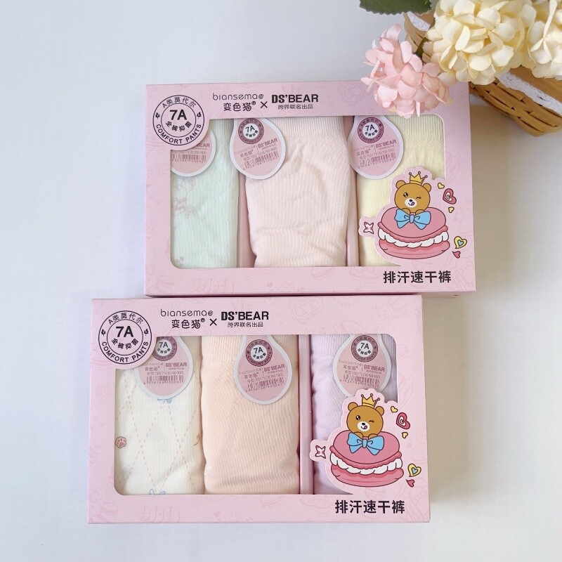 变色猫儿童盒装内裤无缝莫代尔蚕丝底档抑菌透气卡通女童平角内裤