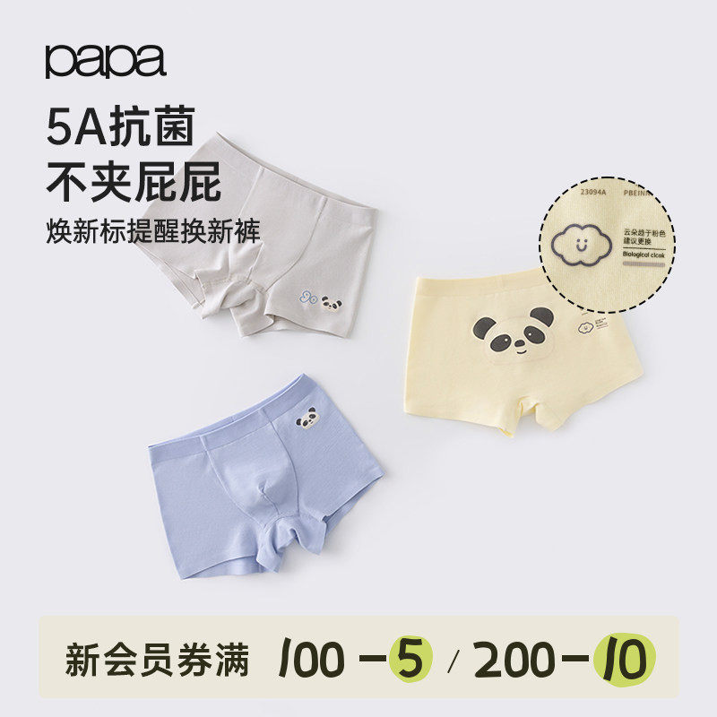 【3条装】papa爬爬儿童内裤卡通男女宝宝小孩平角纯色四角裤衩子