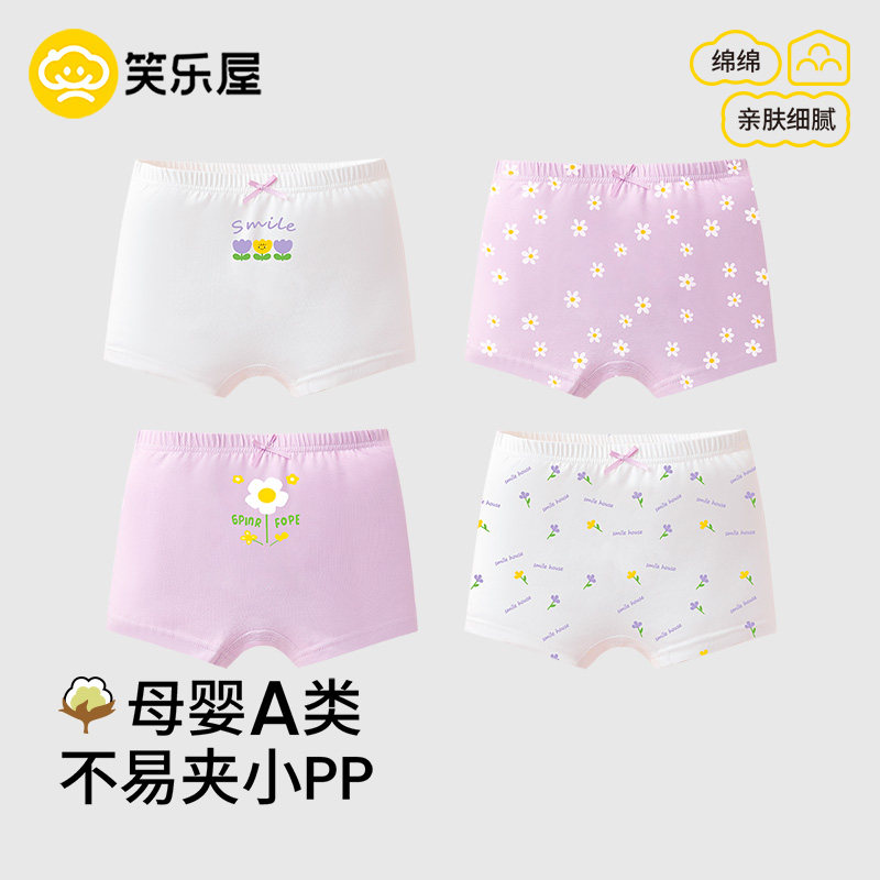 【新】笑乐屋女童印花卡通平角内裤透气7A抗菌宝宝纯棉可爱内裤