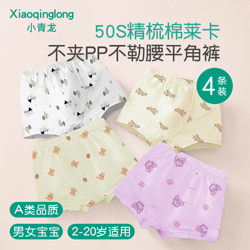 小青龙儿童内裤男童女童平角四角纯棉莱卡宝宝卡通小孩中大童短裤