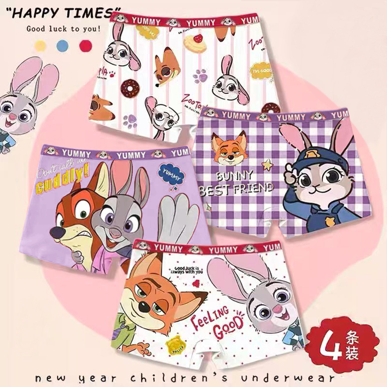 小猪大卫儿童内裤女宝宝卡通印花平角裤柔软贴身4条装四季95%棉