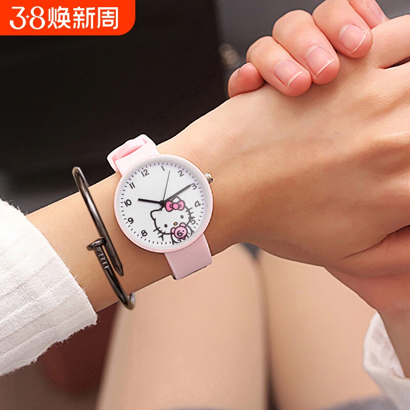 韩版儿童手表女孩时尚防水石英表卡通可爱公主粉KT猫小学生电子表