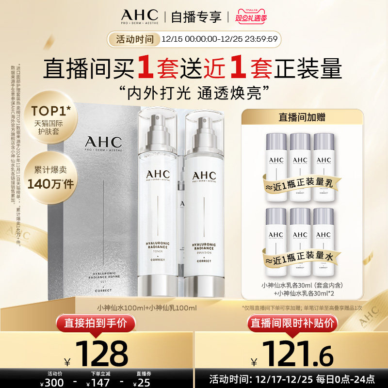 【直播专享】AHC小神仙水乳套装补水保湿焕亮男女官方旗舰店正品