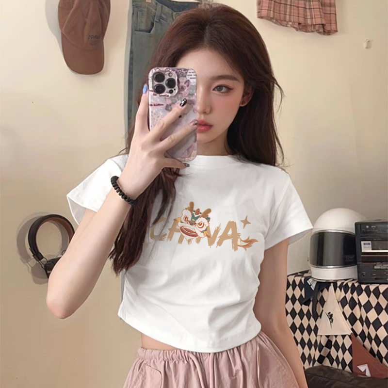 白色短款上衣女短袖小个子t恤女2025年新款V领性感高腰露肚脐夏装