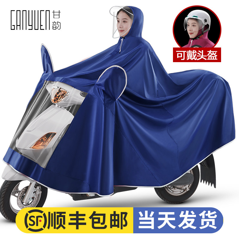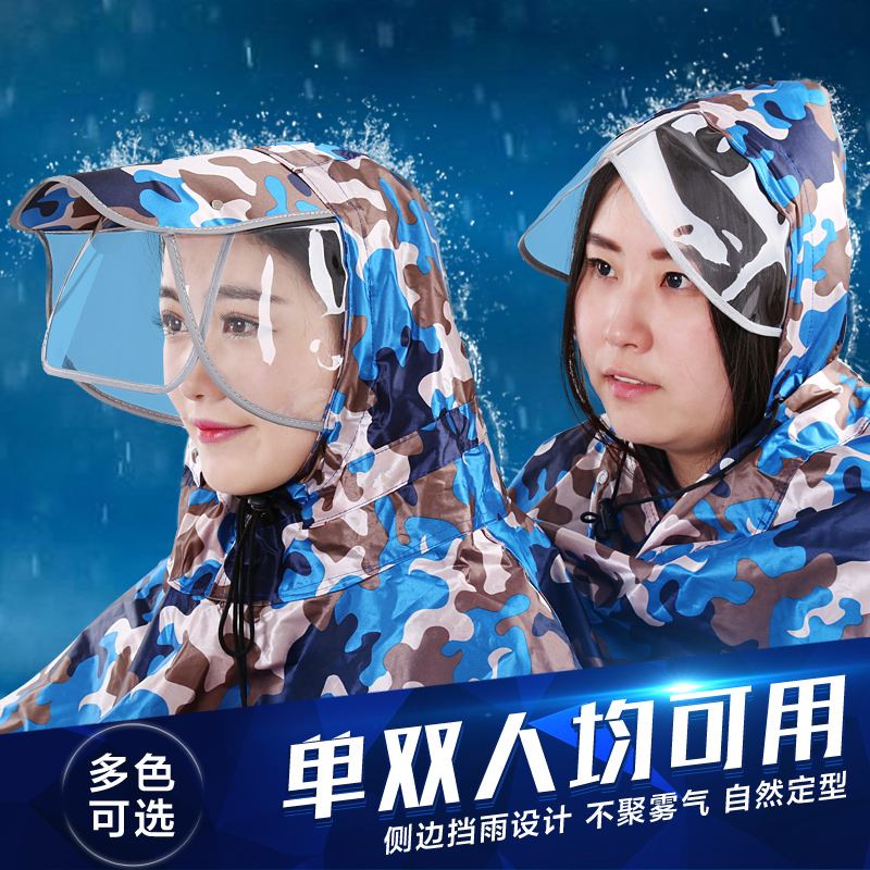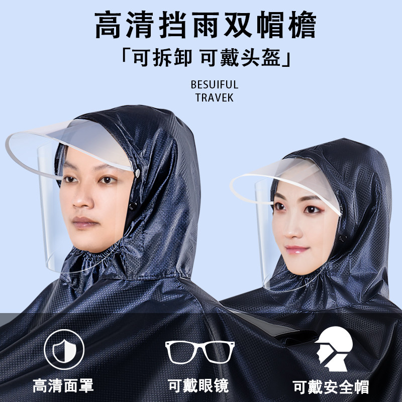 电动摩托车雨衣双人2人成人加大加厚可戴头盔无镜套防暴雨雨披男
