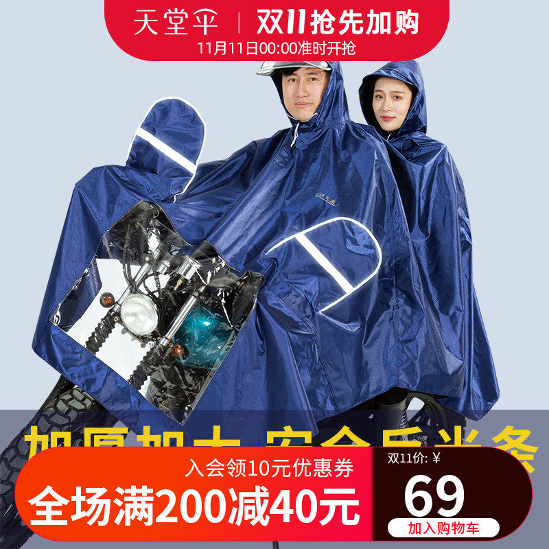 新品天堂电动电瓶摩托车雨衣双人男女加大加厚骑行长款全身防雨披