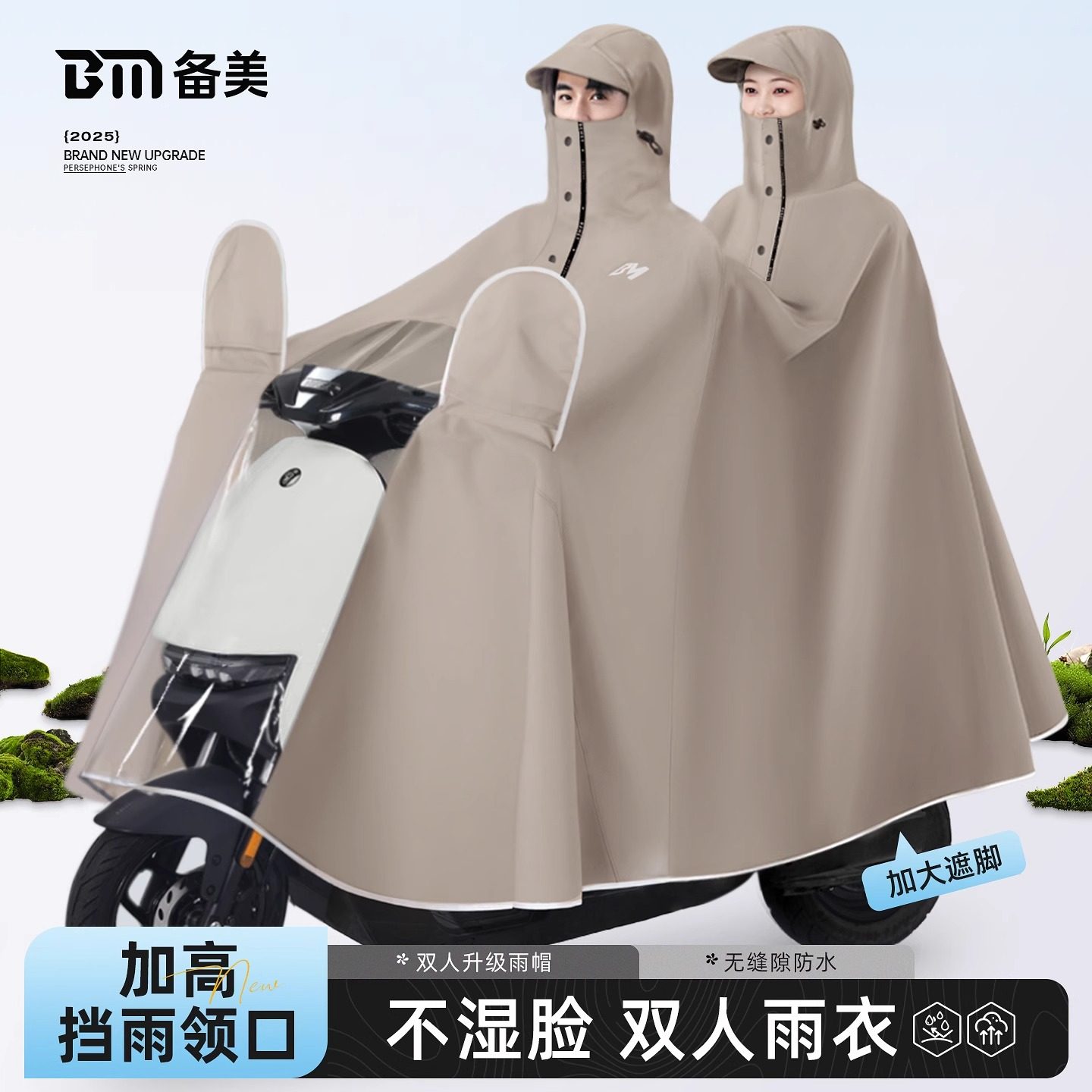 备美电动车雨衣双人2人专用亲子加大加厚摩托车成人全身防暴雨披