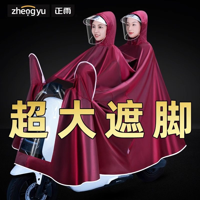 正招电动电瓶摩托车雨衣双人专用2人加大加厚长款全身防暴雨雨披