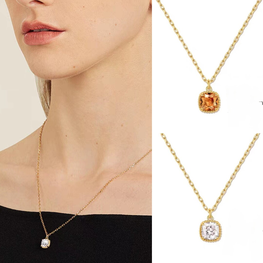明星同款项链小方枕轻奢小众设计毛衣链镀18K金锁骨链美拉德穿搭