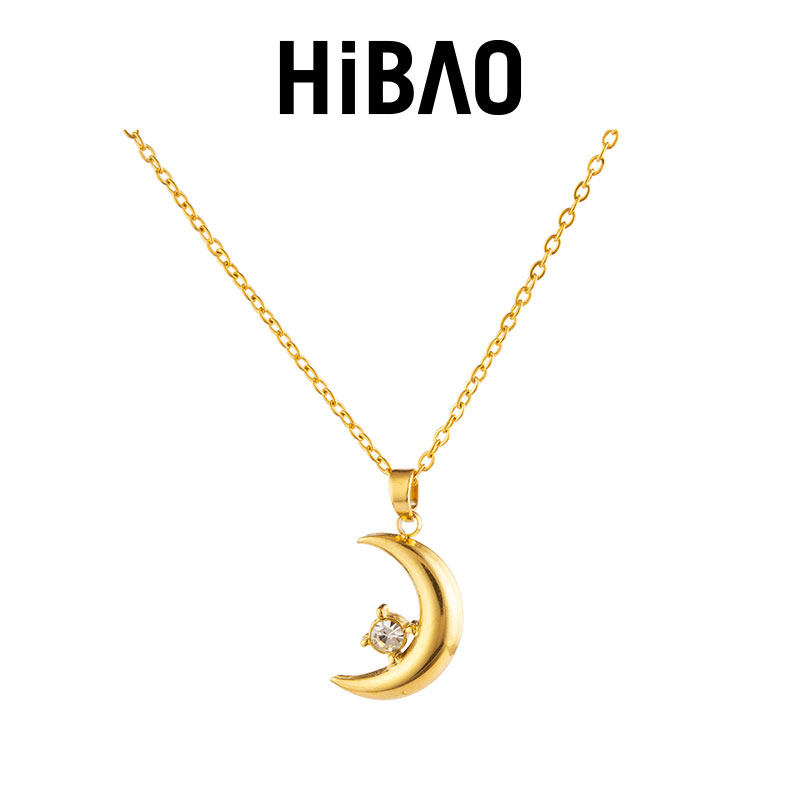HIBAO喜小宝气质镶钻月亮吊坠项链女高级小众18k金锁骨链钛钢颈链