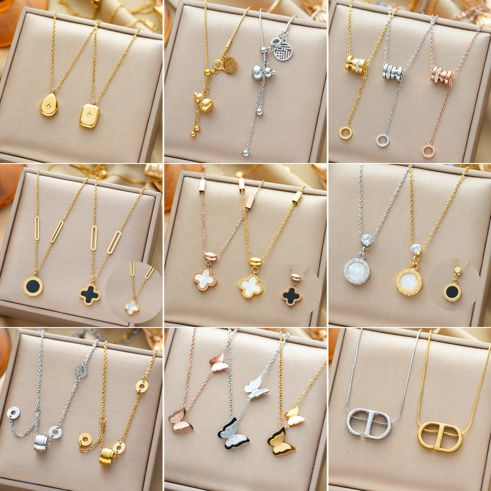热卖气质通体钛钢项链女电镀18K金锁骨链脖子配饰颈链饰品不掉色