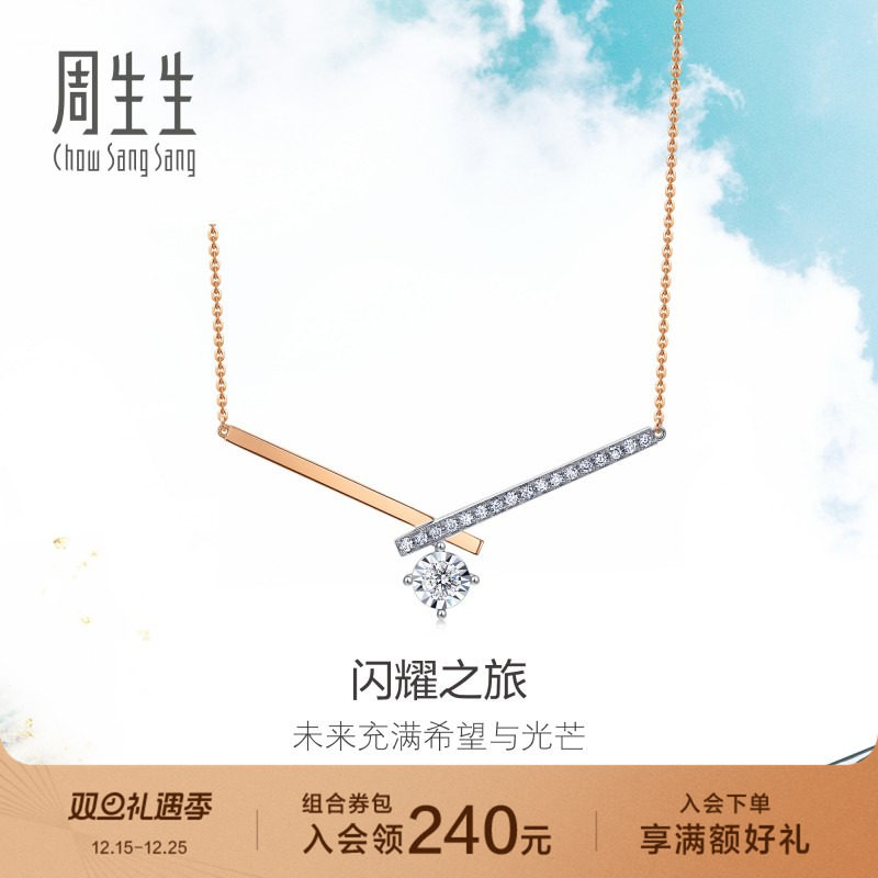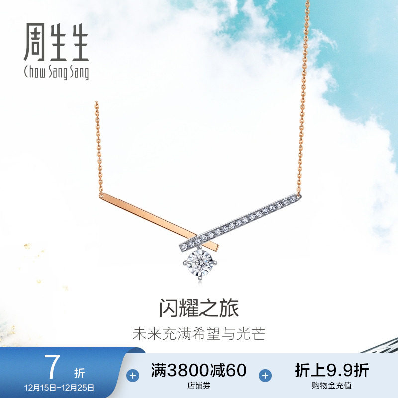 周生生Daily Luxe炫幻排钻钻石项链18k金锁骨链93087N