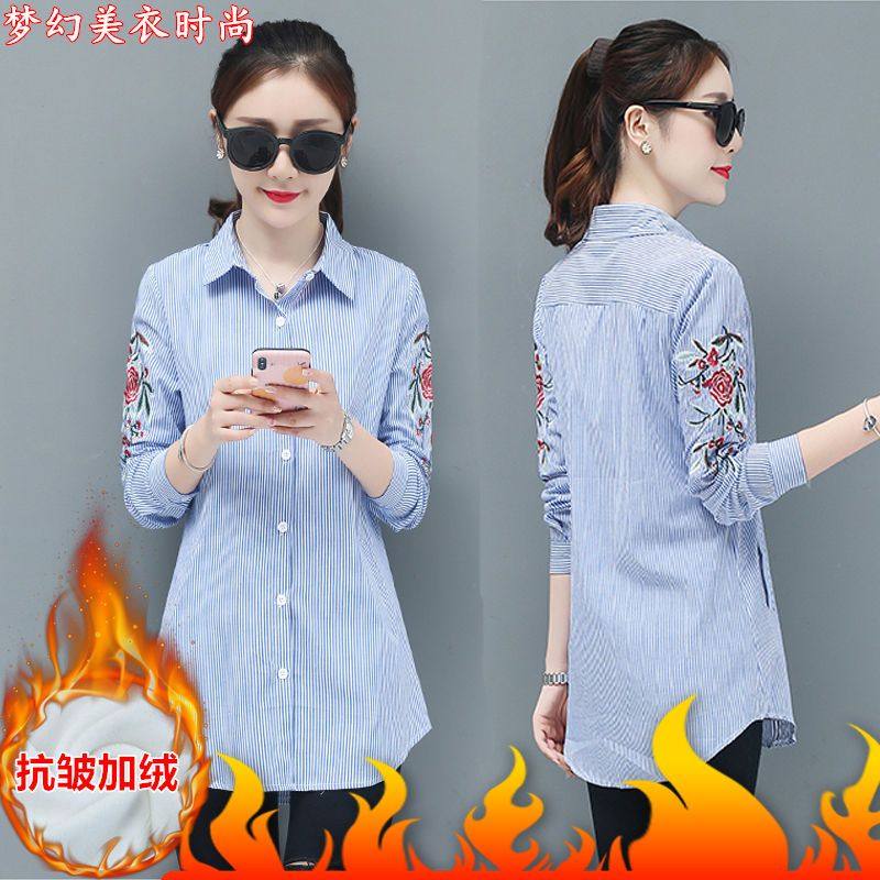 秋冬新款加绒白衬衫女长袖职业装韩范宽松百搭学院风大码衬衣学生