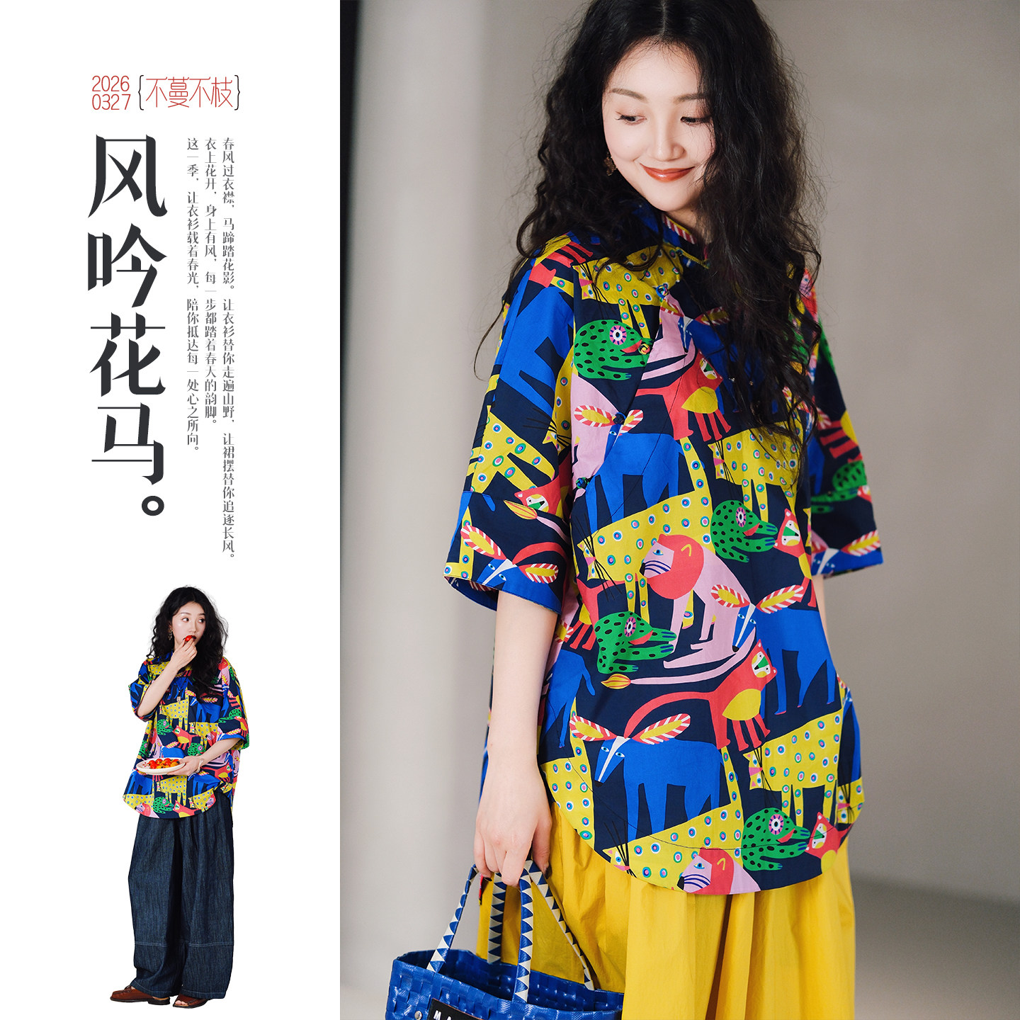 不蔓不枝【童年】新中式纯棉改良旗袍式上衣立领短袖动物印花夏季
