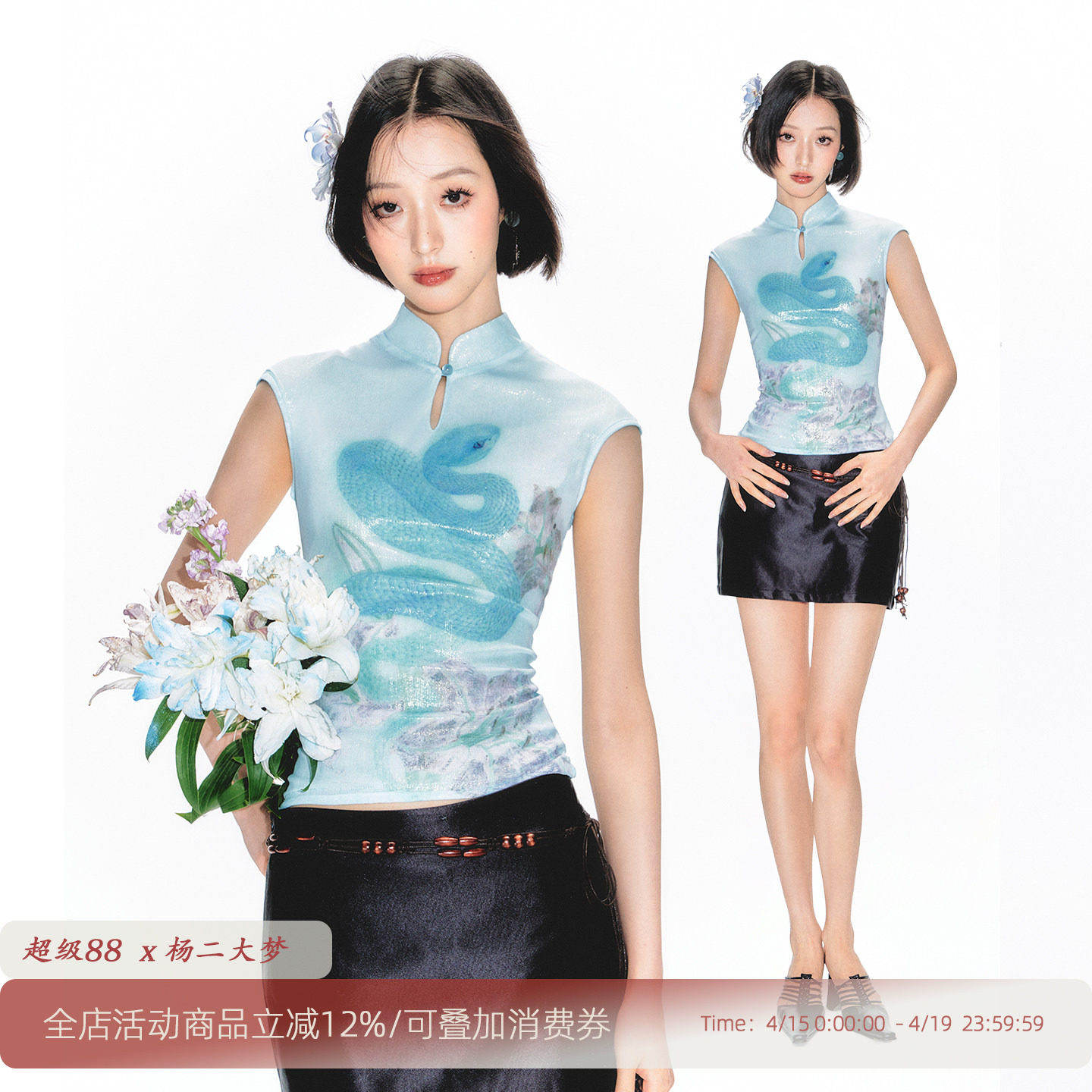 杨二大梦艺术家合作款印花无袖背心女2025立领短款旗袍小上衣女夏