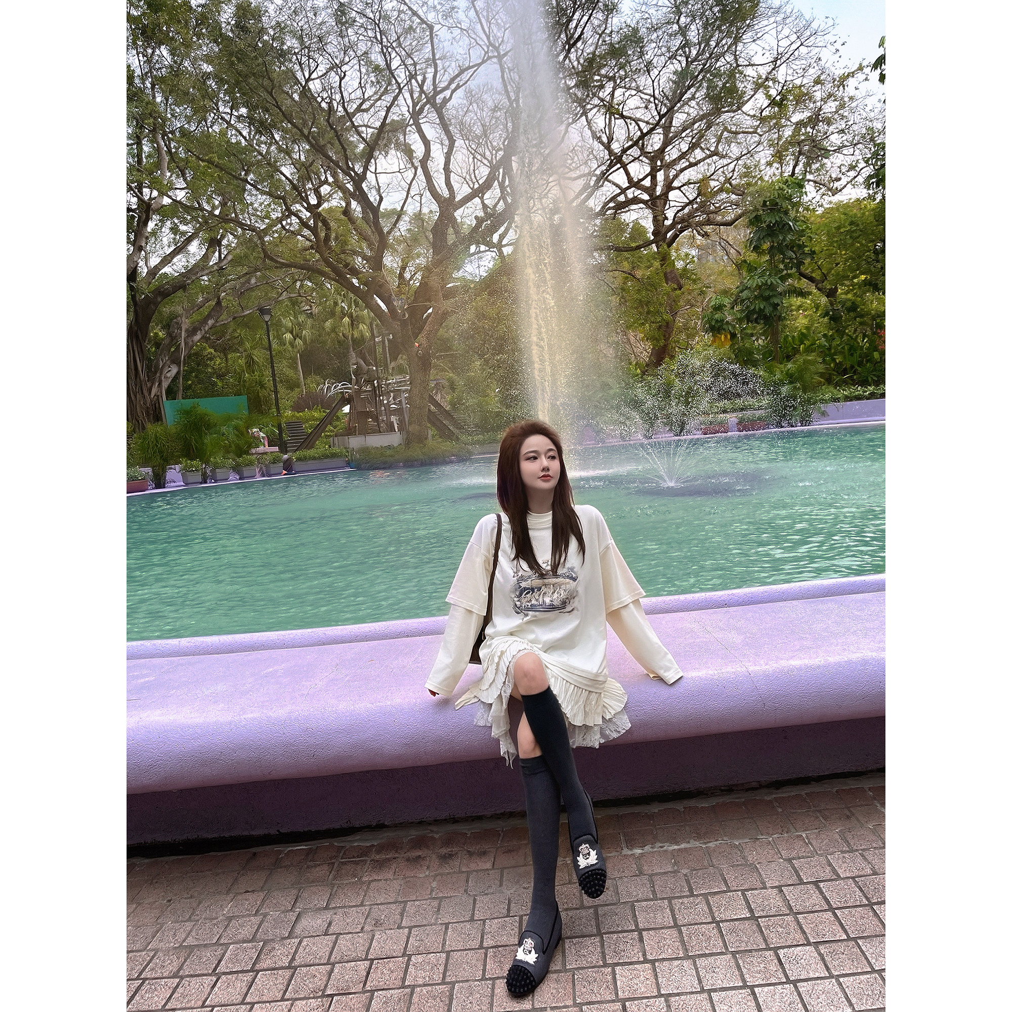 LANGBOOM 旋转木马奶fufu 蕾丝拼接假两件套T恤上衣连衣裙