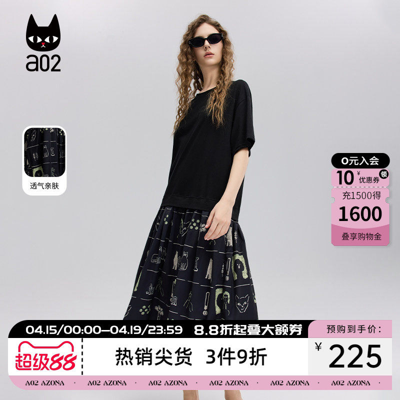 a02法式黑色连衣裙女2026新款夏季宽松轻薄T恤裙设计感轻薄裙子