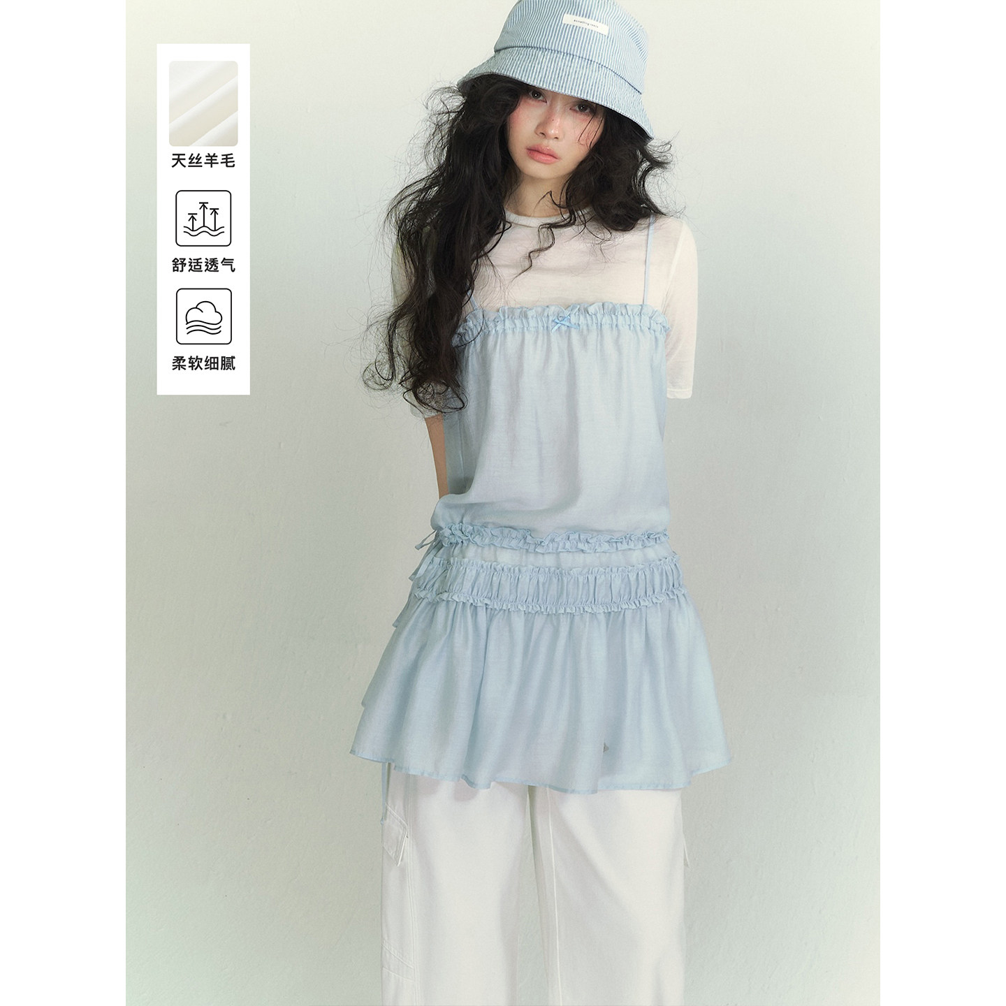SOMESOWE 花边拼接吊带连衣裙/天丝羊毛半高领中袖T恤