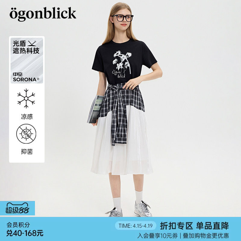 ONLY2026春季新款含莱赛尔假两件拼接亲肤柔软短袖T恤连衣裙女