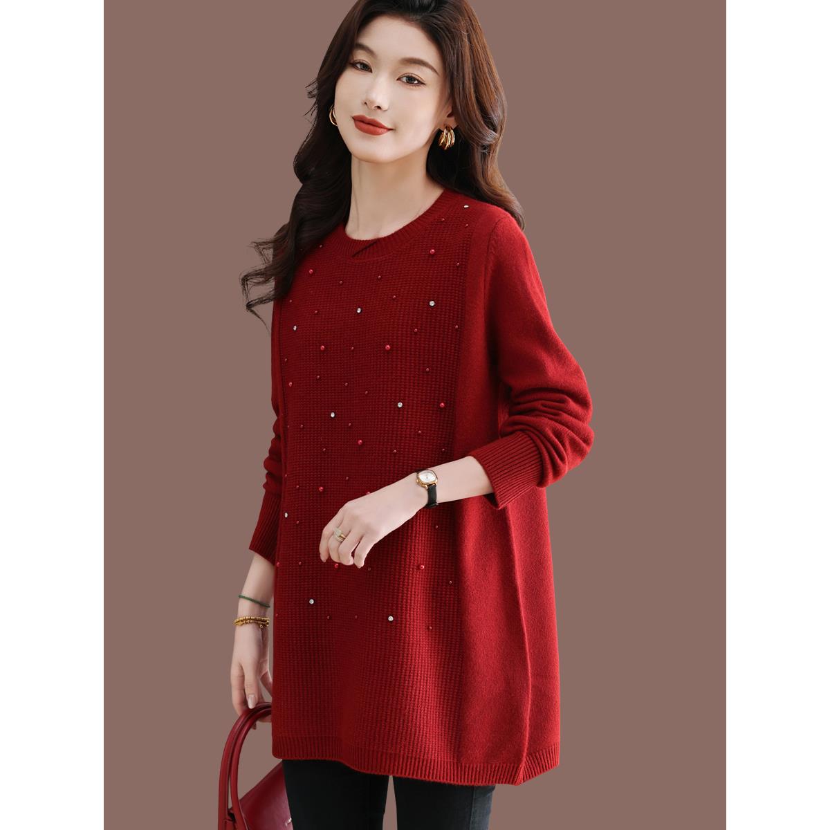 - 秋冬新款韩版懒庸中长款宽松套头针织毛衣女加厚长袖打底线衫外套