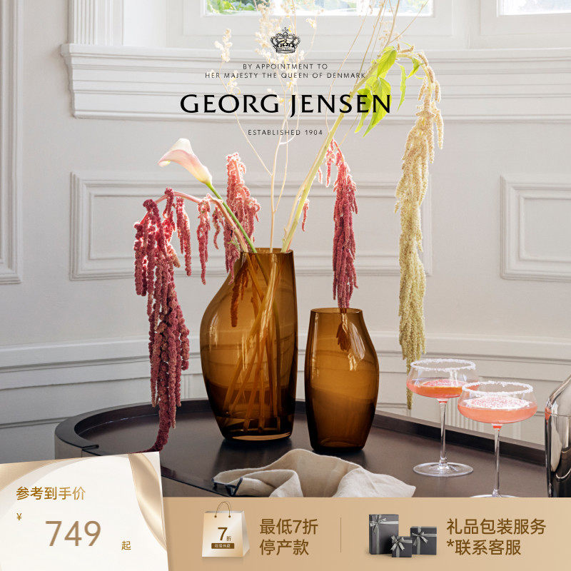 圣诞礼物GeorgJensen乔治杰生SKY琥珀色玻璃花瓶插花北欧摆件