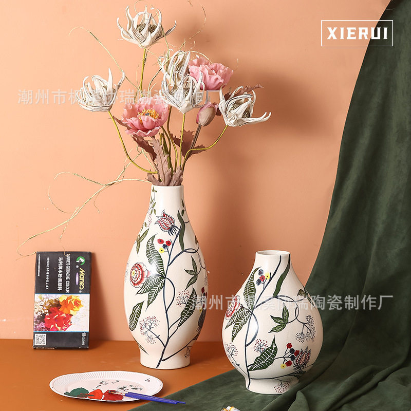 陶瓷手绘花瓶现代轻奢艺术花器客厅样板间家居装饰品田园北欧摆件
