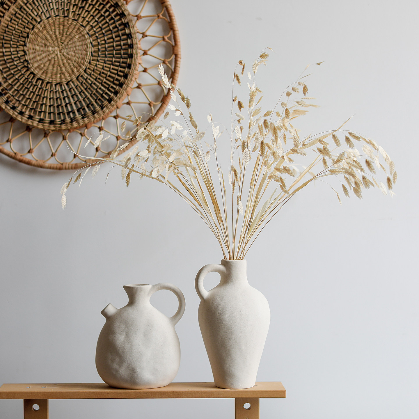 大号北欧摆件复古侘寂风粗陶罐客厅插花装饰现代简约白色家居花瓶