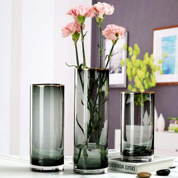 北欧轻奢水晶玻璃花瓶透明客厅酒店插花玫瑰百合鲜花装饰花器摆件