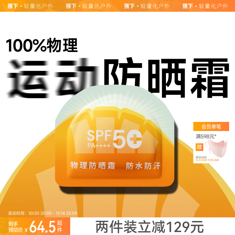 蕉下物理防晒霜运动海边防水高倍防紫外线户外旅行次抛薄防晒乳液