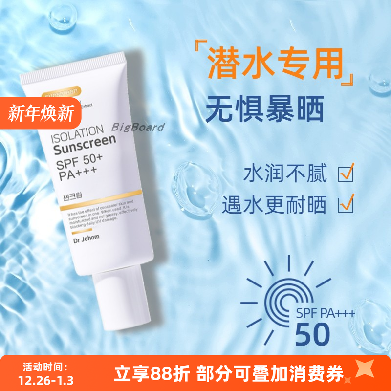自由潜水运动防晒霜冲浪SPF50+防紫外线海边浮潜游泳高倍防晒乳