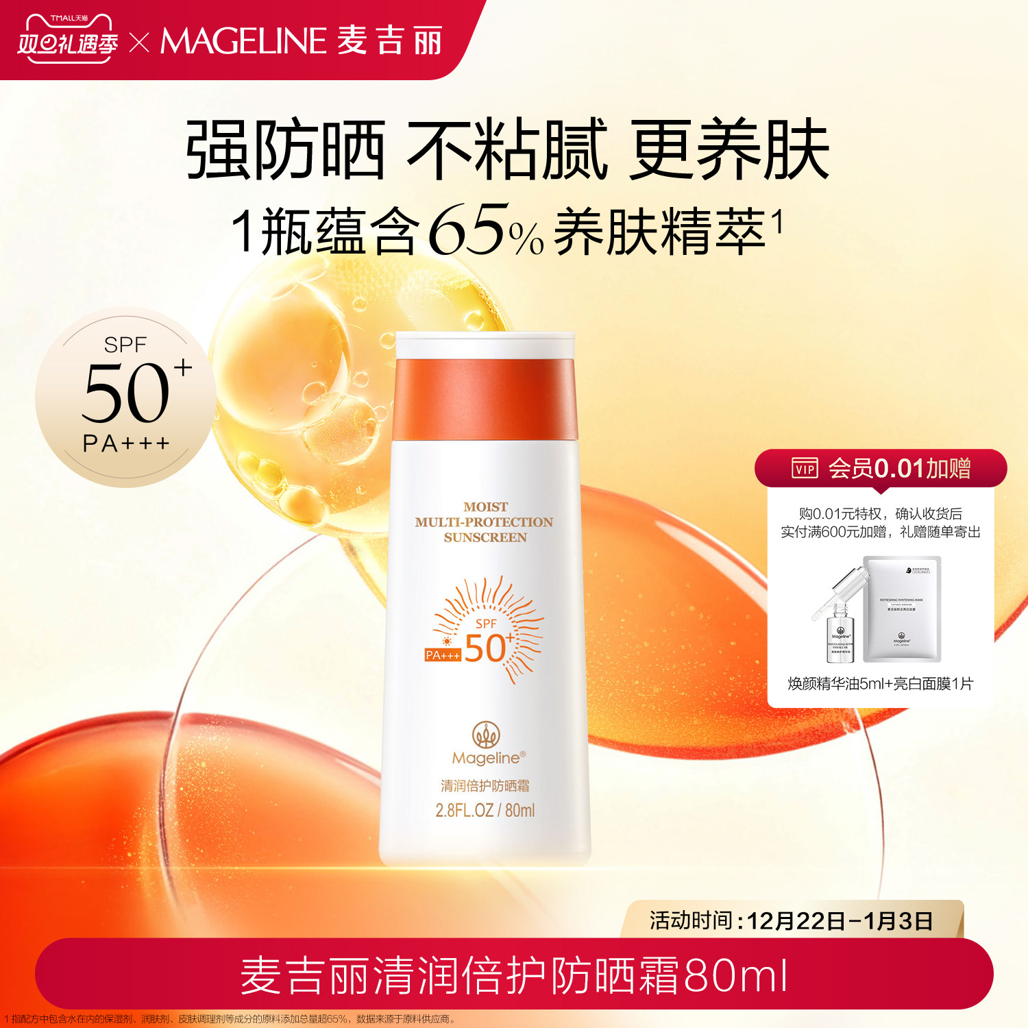 麦吉丽清润倍护防晒霜SPF50+不粘腻防紫外线开车海边官方正品