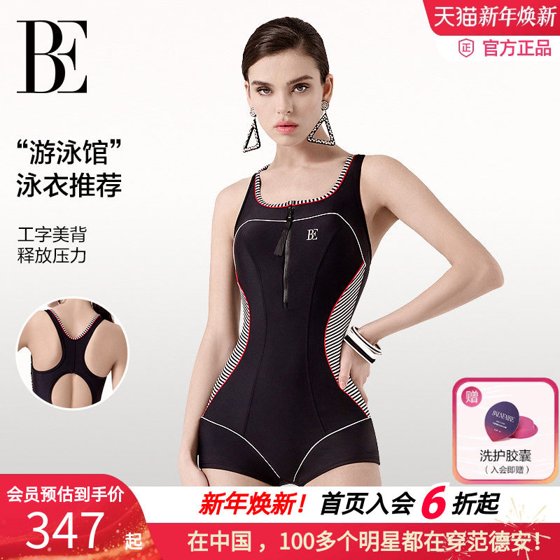 【邓家佳同款】BE范德安连体泳衣女平角保守时尚泡温泉专业游泳衣