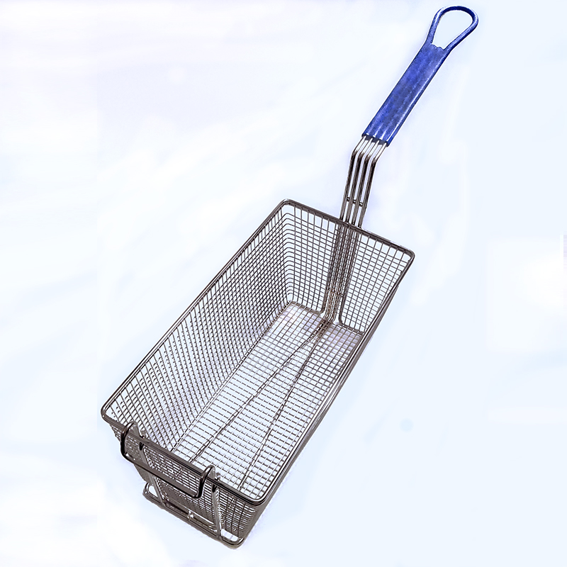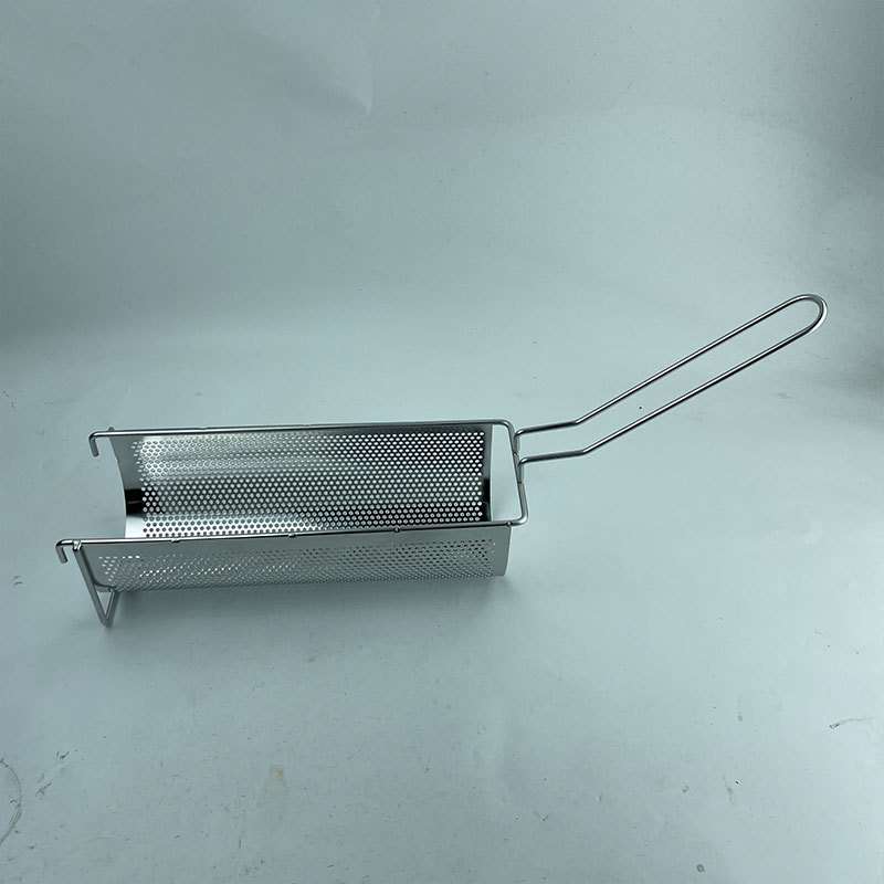 冲孔不锈钢炸蓝商用木把手不锈钢板冲孔双钩炸网炸篮电炸炉炸滤油