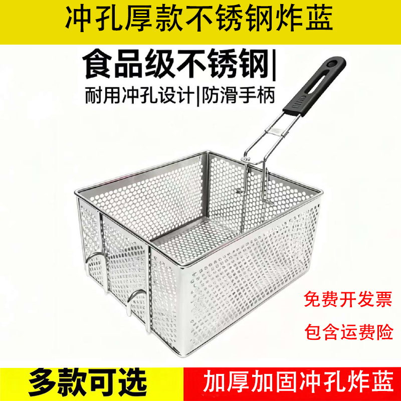 热销不锈钢油炸篮炸网炸篮81框油锅方形滤油网加固加硬薯条炸框电