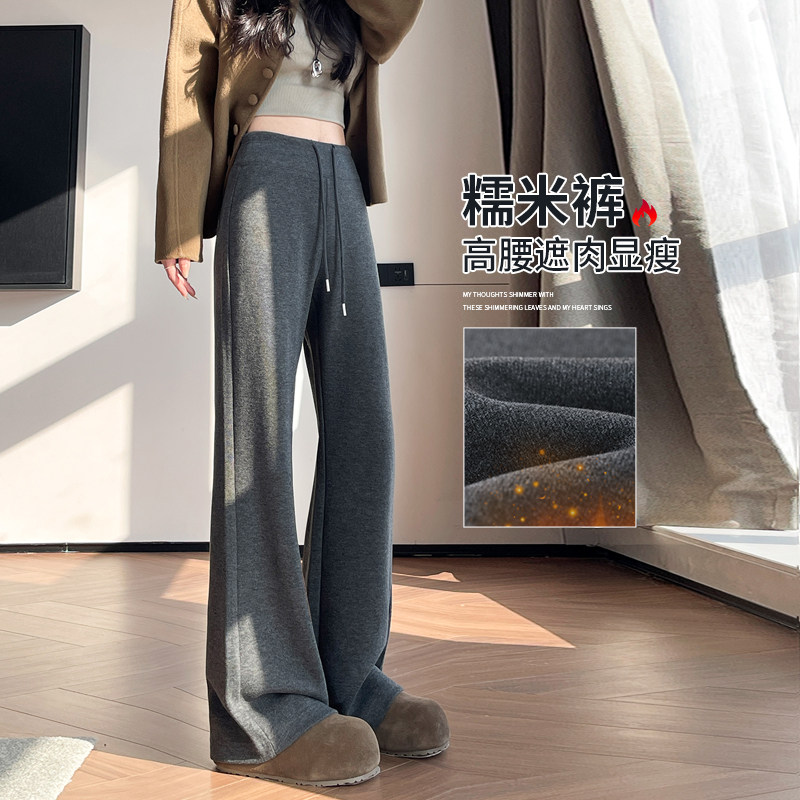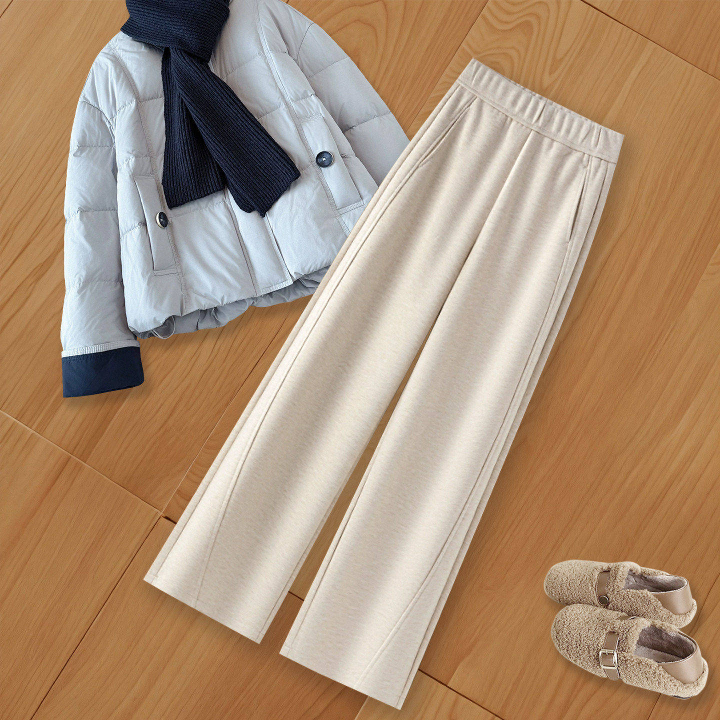 白色裤子女冬加绒糯米裤垂感窄版直筒醋酸羊毛阔腿裤加厚运动卫裤