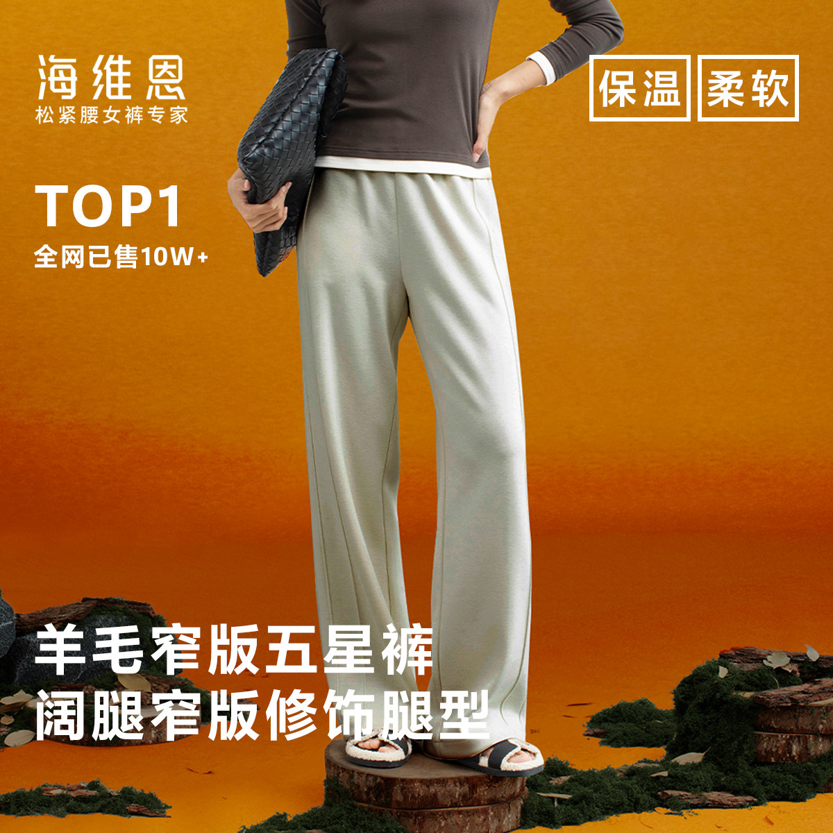 SEAWHEN海维恩窄版直筒休闲裤女秋冬双纱蓄热柔顺保暖羊毛裤长裤