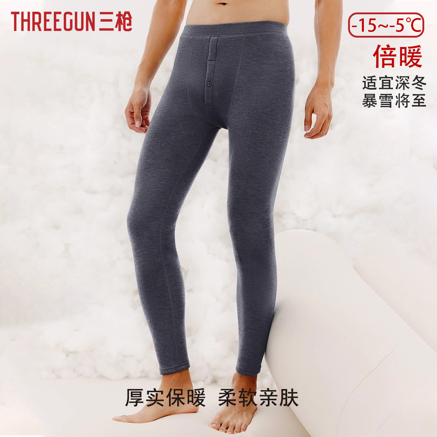 专柜正品三枪保暖裤男加绒加厚羊毛裤抗寒内穿打底高弹修身棉毛裤