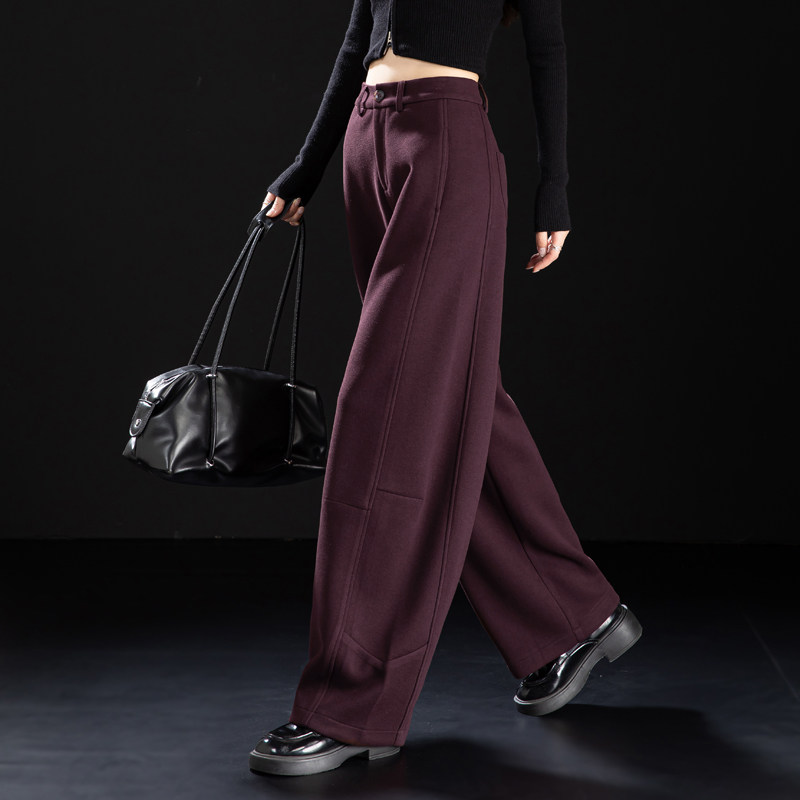 葡萄紫毛呢弯刀裤抓绒裤子女2025新款冬季羊毛裤小个子休闲镰刀裤
