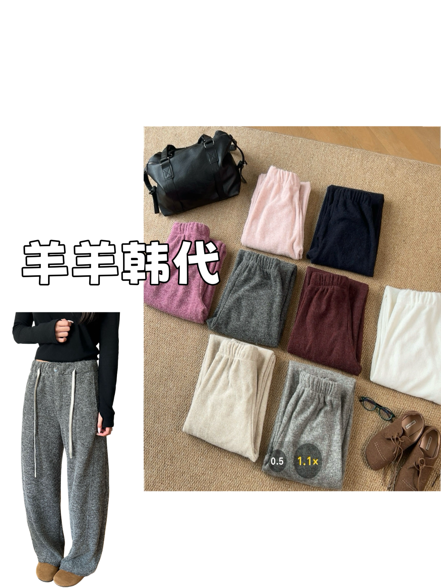 Here yaya shop 芝士奶盖3.0版本复合厚绒桑蚕丝绵羊毛松弛慵懒裤
