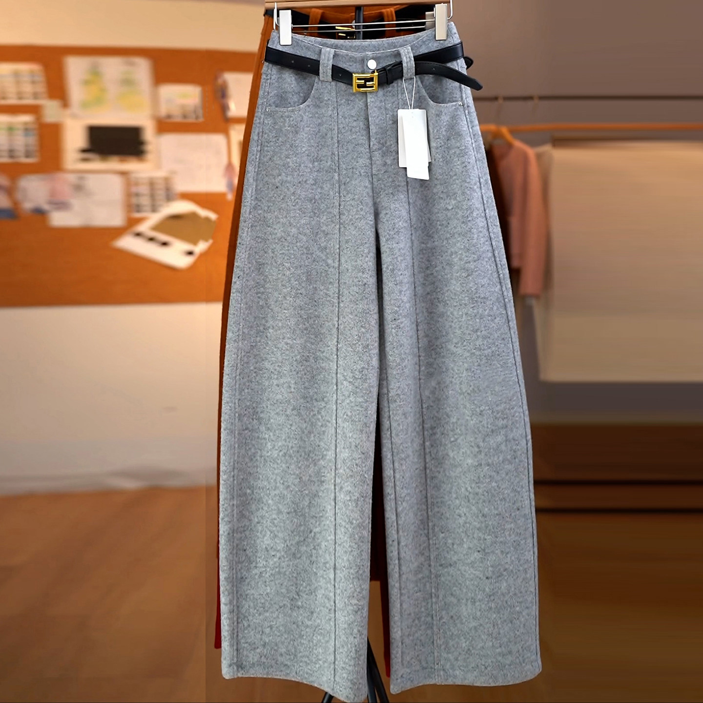 灰色羊毛阔腿裤加绒裤子女25秋冬加厚直筒休闲慵懒感软糯风糯米裤