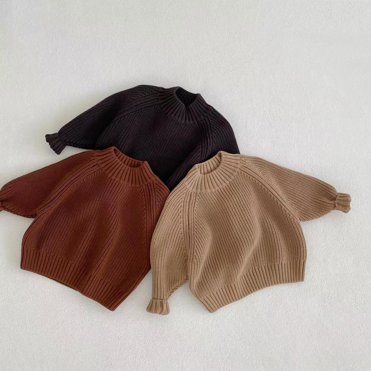 2025秋冬森系儿童纯棉线加厚粗针套头半高领男女童针织毛衣打底衫