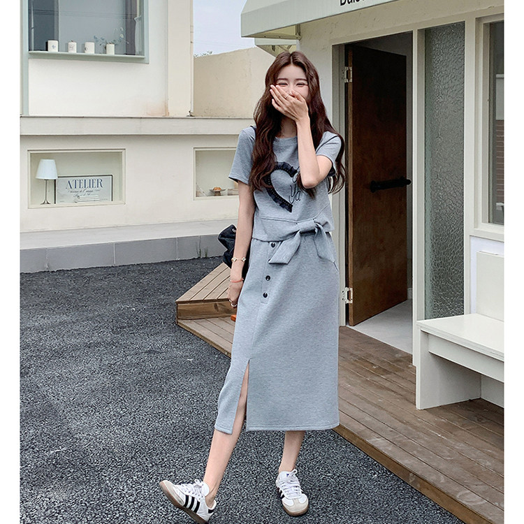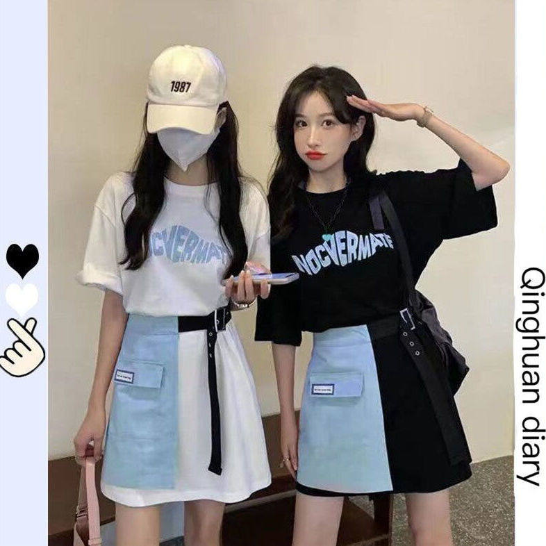 小个子设计感T恤裙+半身裙子夏季减龄两件套女装炸街辣妹时尚套装