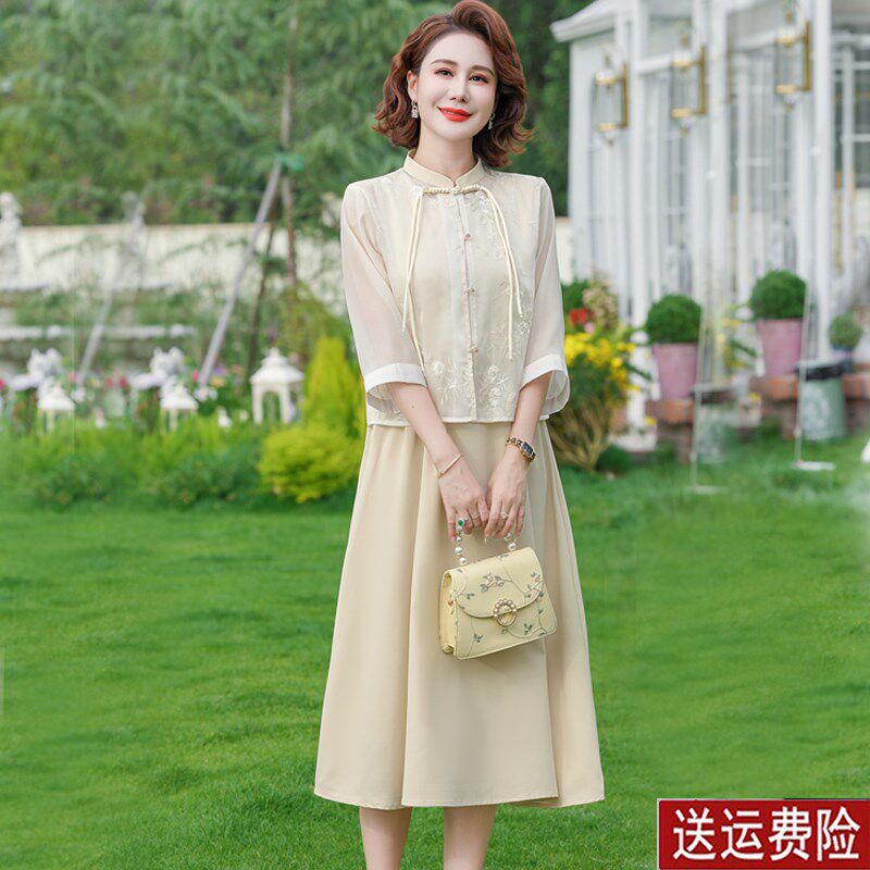 新中式妈妈连衣裙两件套2024春装新款国风裙子中老年女装夏季套装