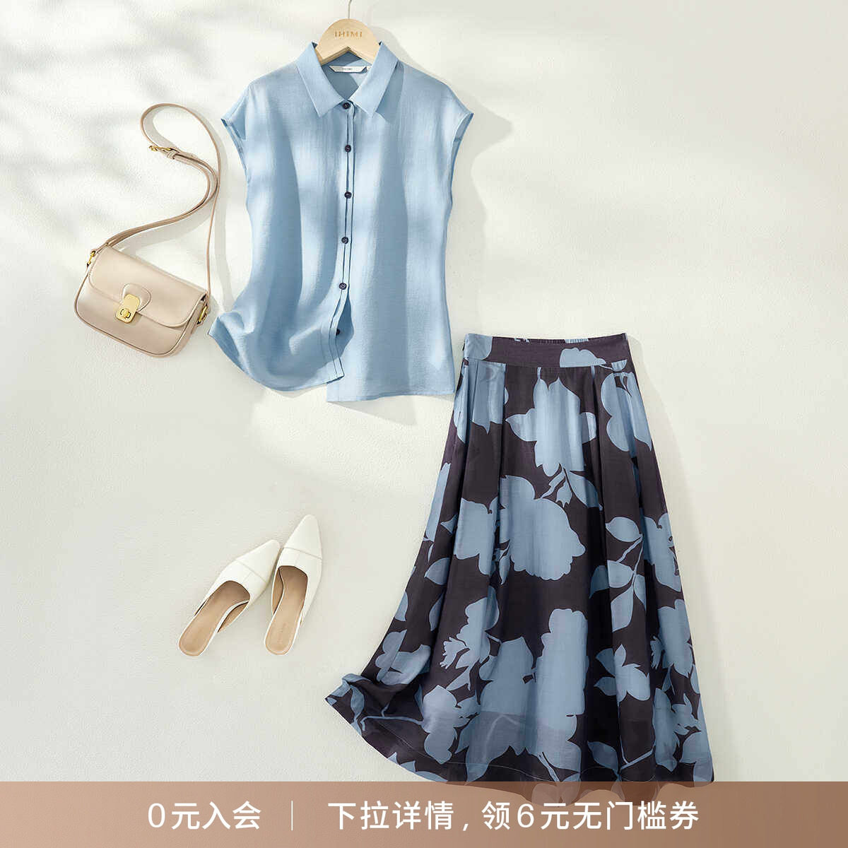 IHIMI海谧洋气衬衫复古半身裙两件套女2025夏季新款上衣裙子套装